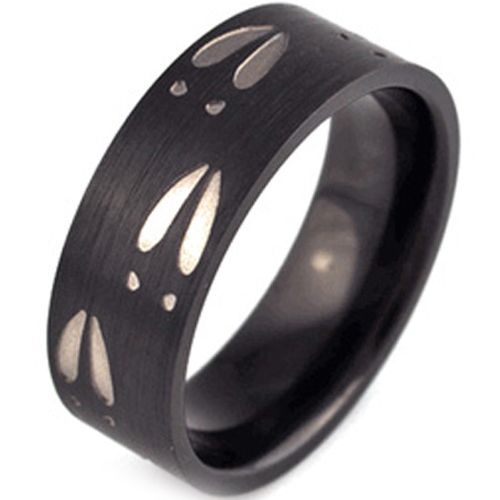 COI Black Tungsten Carbide Deer Track Dome Court Ring-TG2921