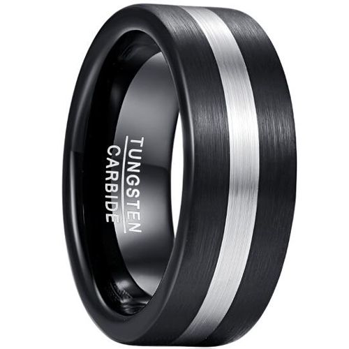 COI Tungsten Carbide Black Silver Pipe Cut Flat Ring-TG5058