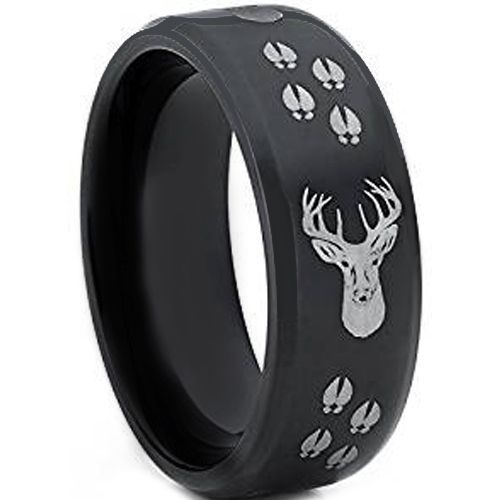 COI Black Tungsten Carbide Deer Track Wedding Band Ring. Comfort fit with inside round shank. A 100% tailor-made ring for you. Classic with delicated details, unsurpassed quality plus incredible value! Perfect as a wedding band, engagement ring or just for everyday wear due to its extreme comfort!
