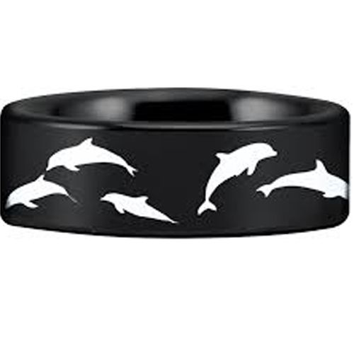 COI Black Tungsten Carbide Dolphin Wedding Band Ring. Comfort fit with inside round shank. A 100% tailor-made ring for you. Classic with delicated details, unsurpassed quality plus incredible value! Perfect as a wedding band, engagement ring or just for everyday wear due to its extreme comfort!