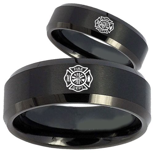 COI Black Tungsten Carbide Fire Fighter Wedding Band Ring. Comfort fit with inside round shank. A 100% tailor-made ring for you. Classic with delicated details, unsurpassed quality plus incredible value! Perfect as a wedding band, engagement ring or just for everyday wear due to its extreme comfort!