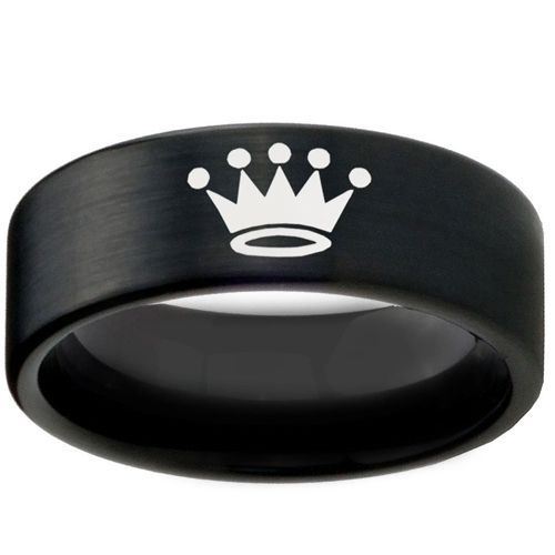 COI Black Tungsten Carbide King Crown Wedding Band Ring. Comfort fit with inside round shank. A 100% tailor-made ring for you. Classic with delicated details, unsurpassed quality plus incredible value! Perfect as a wedding band, engagement ring or just for everyday wear due to its extreme comfort!