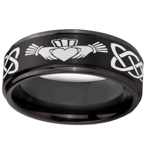 COI Black Tungsten Carbide Mo Anam Cara Celtic Ring-TG2385