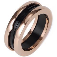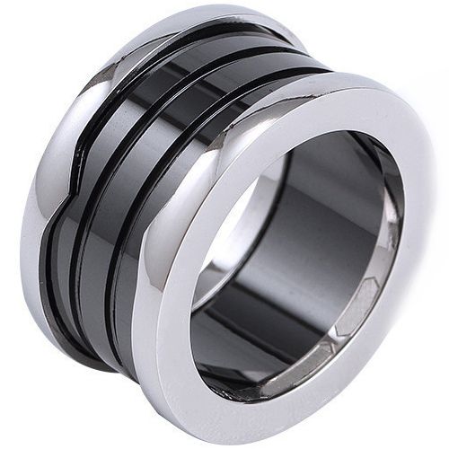 **COI Tungsten Carbide Double Grooves Ring With Black/White Ceramic-8271DD