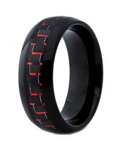 COI Tungsten Carbide Gears Dome Court Ring With Carbon Fiber & Wood.  Comfort fit with inside round shank.  A 100% tailor-made ring for you.  Classic with delicated details, unsurpassed quality plus incredible value!   Perfect as a wedding band, engagement ring or just for everyday wear due to its extreme comfort!