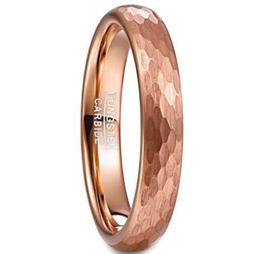 COI Rose Tungsten Carbide 4mm Hammered Ring-5479
