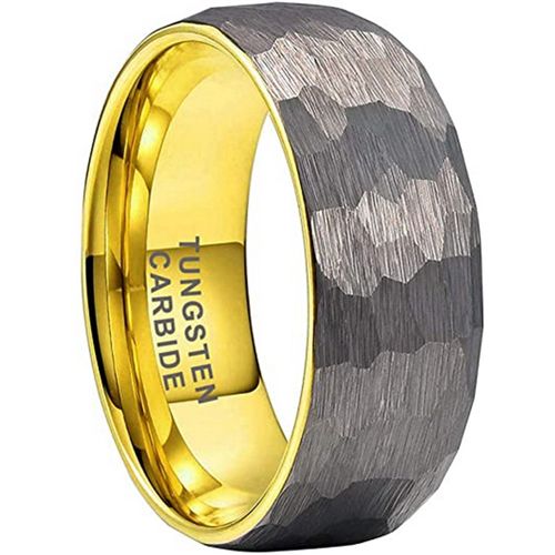 COI Tungsten Carbide Gold Tone Silver Hammered Dome Court Ring. Comfort fit with inside round shank. A 100% tailor-made ring for you. Classic with delicated details, unsurpassed quality plus incredible value! Perfect as a wedding band, engagement ring or just for everyday wear due to its extreme comfort!